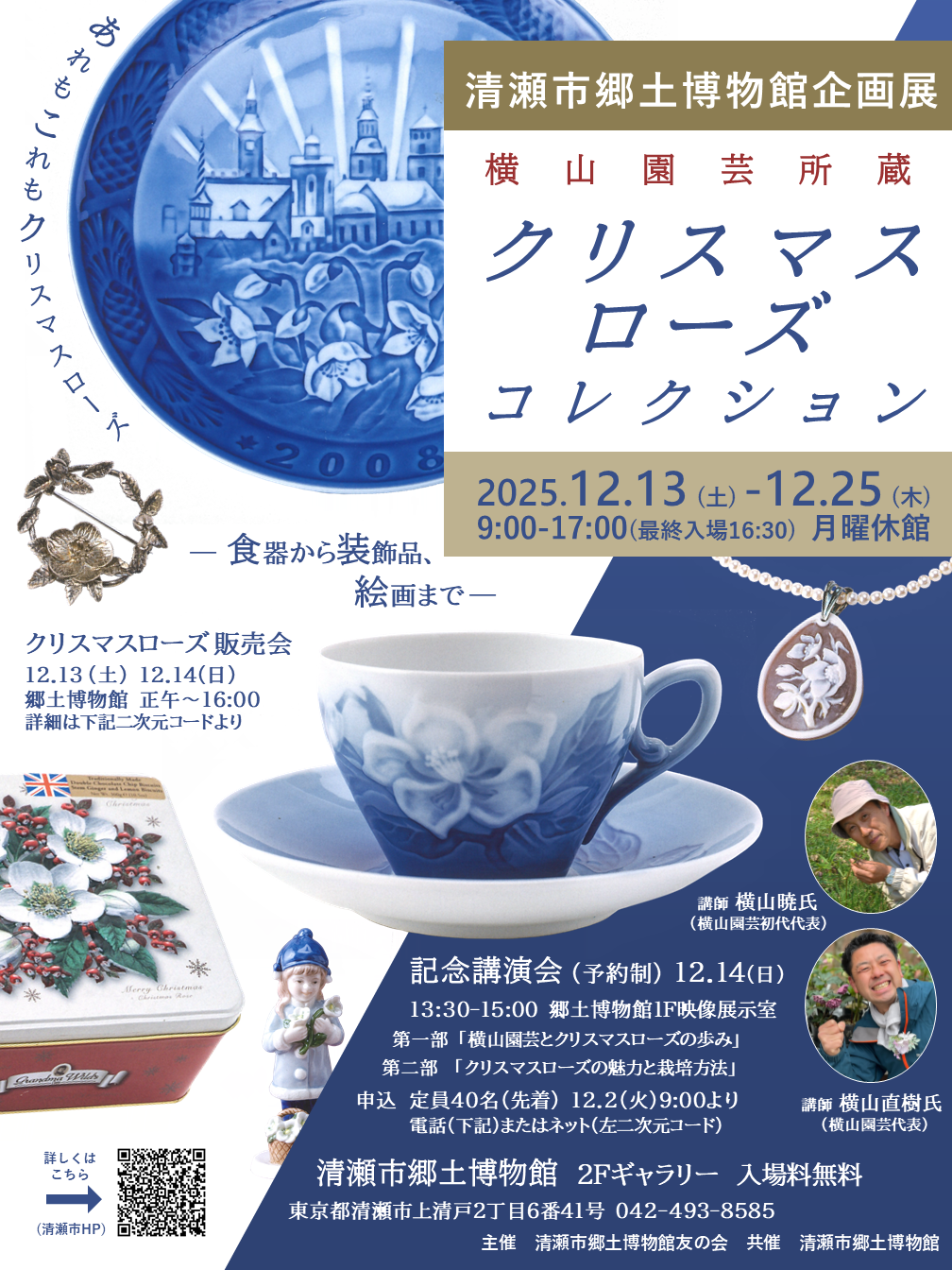 清瀬市の横山園芸が収集したクリスマスローズのあしらわれた美術工芸品を展示します。