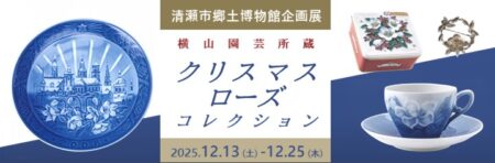 清瀬市の横山園芸が収集したクリスマスローズのあしらわれた美術工芸品を展示します。 開催日 2025年12月13日(土)〜2025年12月25日(木) 開館時間 9:00〜17:00(最終入場16:30) 場所 清瀬市郷土 […]